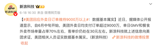 多家媒体引用了这样一组数据:“6月初,美团、淘宝、京东三家平台峰值单量分别升至9000万单、4000万单和2500万单。”